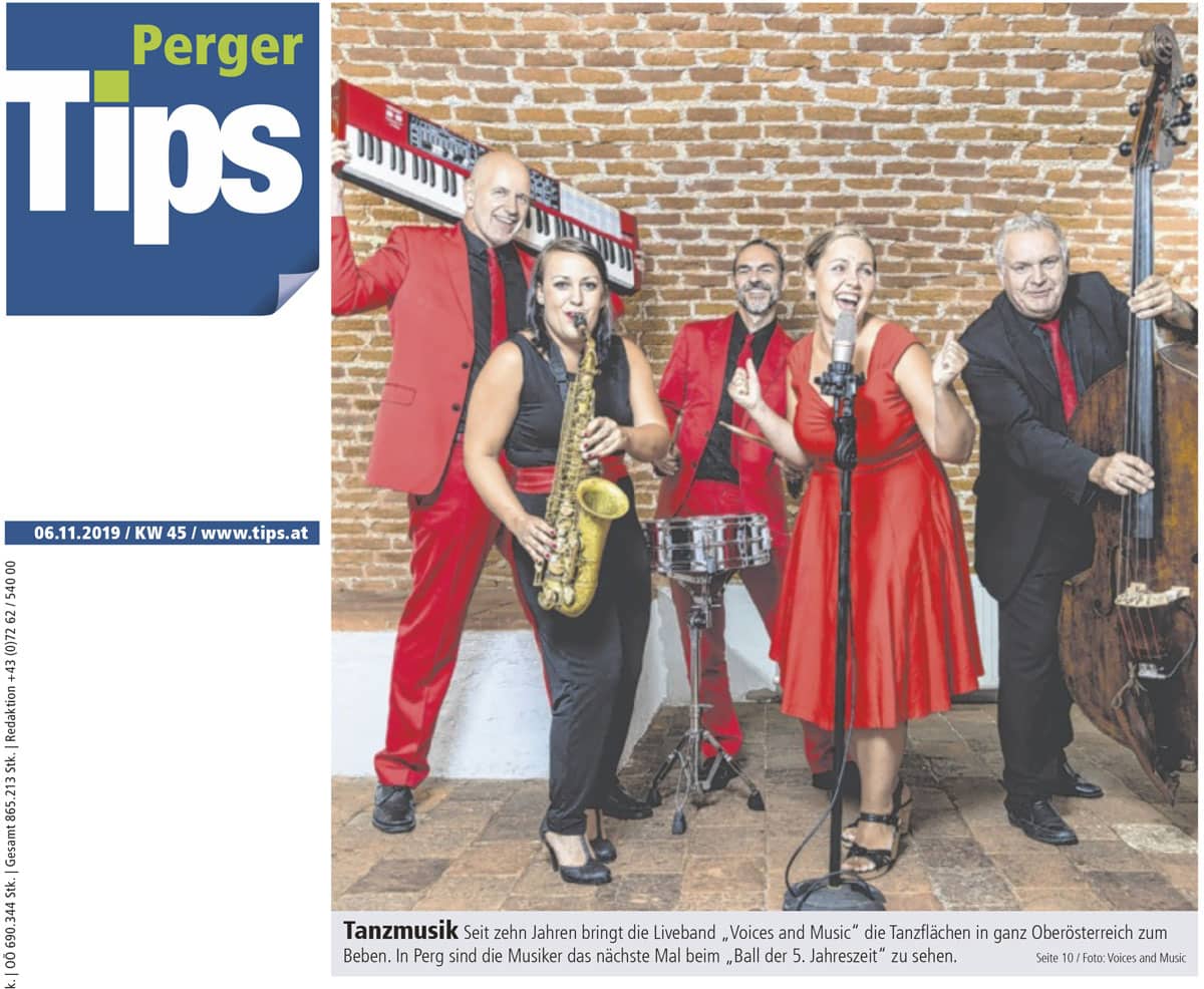 Tanzmusik – Seit 10 Jahren bringt die Live Band „Voices And Music“ die Tanzflächen in ganz Oberösterreich zum Beben. In Perg sind die Musiker:innen das nächste Mal beim „Ball der 5. Jahreszeit“ zu sehen.