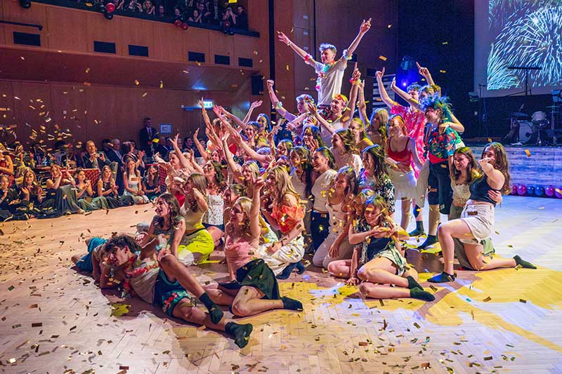 Energiegeladen Performance auf und vor der Bühne im Bruckner Haus Linz beim Maturaball der Kreuz Schwestern! Foto: Der Ballfotograf, Jänner 2025